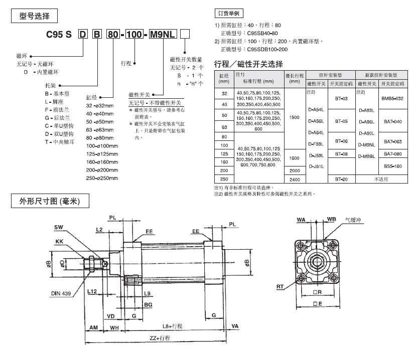 SMC标准气缸,SMC技术气缸