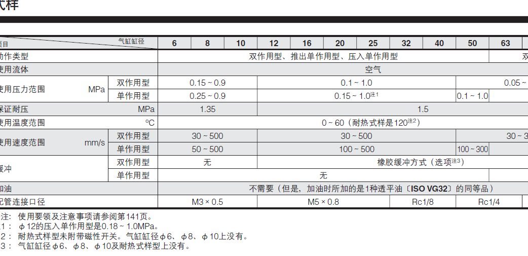 缸径 mm 行程 mm 配管连接口径