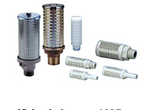 | 金属外壳型 | 2504~2511 | >19 | 只向轴向排气,避免声音和油雾的横向扩展,耐横向冲击、连接螺纹不易损坏,吸声材料为PVC、连接体为ZDC |