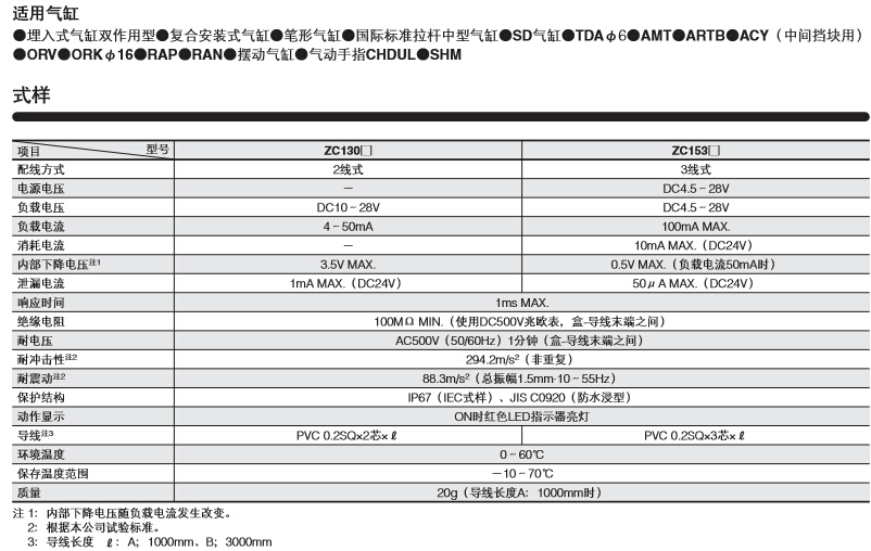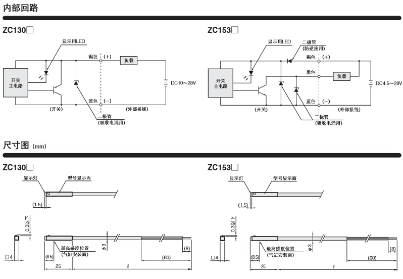 2线式无接点带LED ZC130 无触点式磁性开关ZC130系列