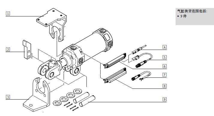 • 用于将气缸和附件安装到双耳环上