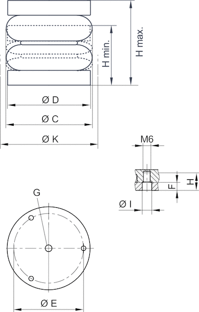 顶盖直 径压缩空气连接尺寸 G较大有效行程小径向安装空间特征较 / 较高环境温度材料 皮腔材料 盖板力,小-较大重量图片物料号