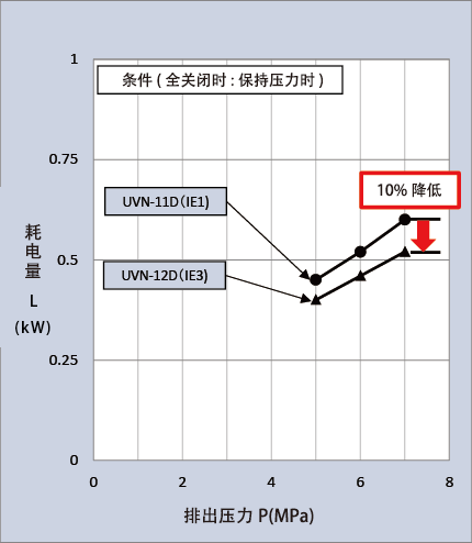 保持压力时的节能效果(泵+电机组合单体)