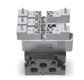 7 系列电磁阀和气控阀是一种板式联接阀,阀的安装尺寸符合 ISO 15407-1 标准,互换性强。其尺寸规格有 VDMA 01(阀宽 26 mm)和 VDMA 02(阀宽 18 mm)两种,具有不同的公称流量。