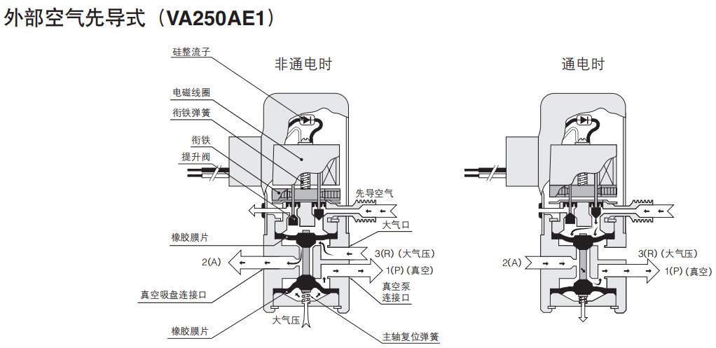 手动操作控制真空流向的阀。按钮式、扳手式等型号。小型轻量、不容易发生故障的结构。