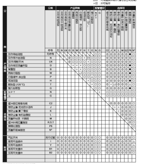 注1:背靠型带有2个气缸。在各个产品种类时,请按照下述方法。