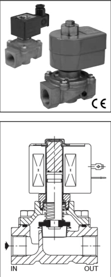 安装•B001 / B002 / B003电磁阀可以安装在任何位置,不会影响操作。 A024 / B025 / B026电磁阀必须垂直和竖直安装•入口处的标准集成过滤器,用于A024,B025和B026型阀门。过滤器对于B001,B002和B003型是可选的•管道连接标识符E = Rp(ISO 7/1)•每个阀门都包含安装/维护说明