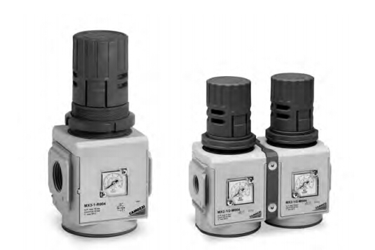 MX 系列减压器可稳定的出口压力,通过旋手调节压力的输出。旋手可锁定以防止误操作。减压器有内置式压力表和螺纹接口(用于安装外置式压力表)两种。减压器可面板式安装。