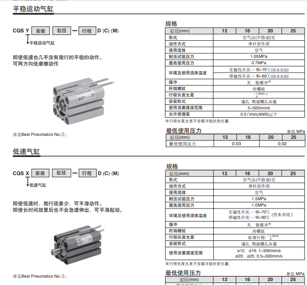 CQS 系列 薄型气缸/小型气缸 标准型/单杆双作用