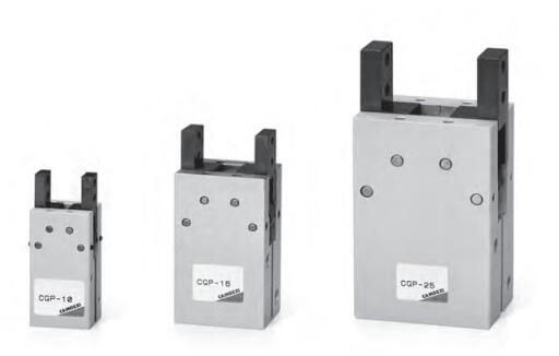 CGP 系列平行式爪钳按照其驱动气缸的缸径(即出力的大小)可分为五种不同的规格。爪钳在具有很高耐用度的滑动部件上平行移动,活塞上装有永磁体,可使用 CSB 型磁性接近开关。磁性接近开关安装在基座的 T 型凹槽内,以检测爪钳的张开或关闭。