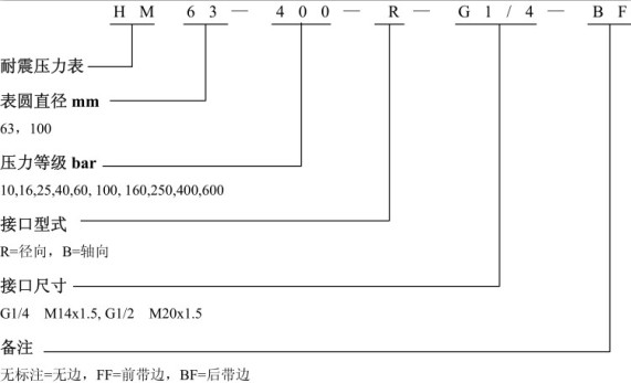 HM63-250-B-G1/4耐震压力表,工作说明