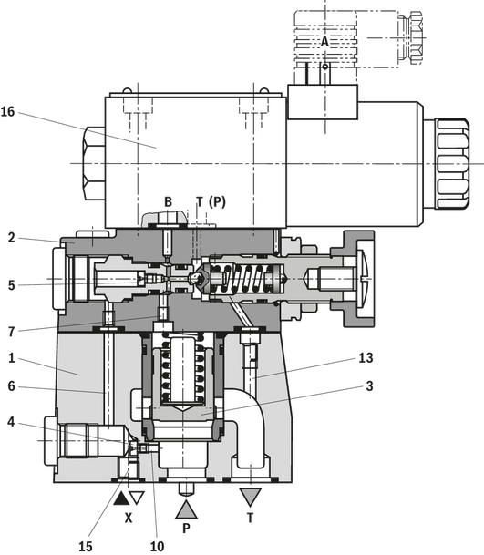 通过一个上装的换向滑阀或换向座阀的电磁铁操纵式卸荷