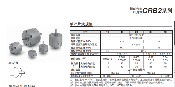 SMC可直接安装摆动气缸 CRB2/CDRB2-Z