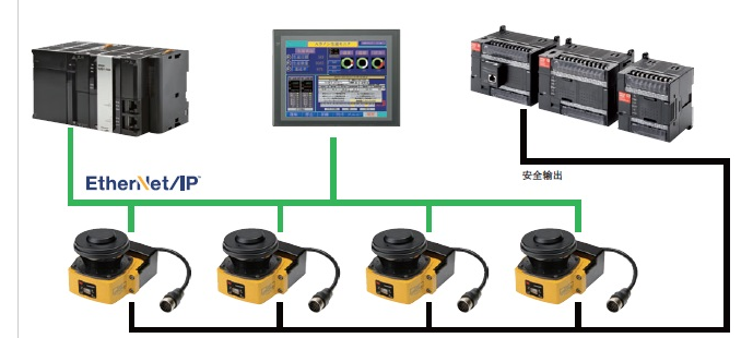 备有可通过EtherNet/IP™监控OS32C的动作状态及区域设定信息、测量数据的机型(OS32C-BP-DM(-4M)、OS32C-SP1-DM(-4M))。