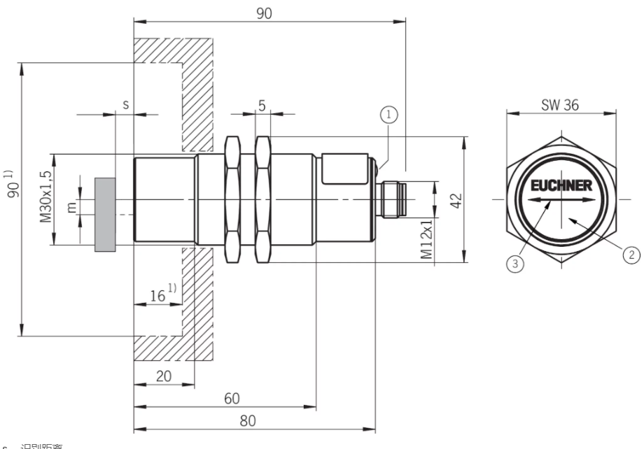 25°C时,Y方向识别距离s=5mm -6 ... 6 mm