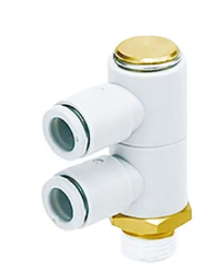 SMC 的 KQ2VD 双通用插入式弯头配件可快速轻松安装到您的气动配件中。
