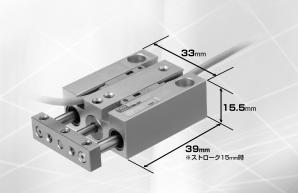 对短行程用和长行程用气缸的缸体结构实施了优化,两侧设置导杆,实现了、高刚性、省空间。